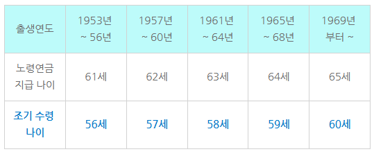 국민연금은 개인적으로 경제적인 상황이 여의치 않다면 실제 수령 나이 보다 5년 앞당겨 받을 수 있도록 만든 조기수령제도가 있습니다. 하지만 조기수령은 매월 0.5%씩 1년 동안에는 약6%씩 감액된 금액을 지급합니다. 또한 월 평균 소득금액이 2,989,237원을 초과하지 않아야하니 꼭! 확인하시고 신청하시길 바랍니다.